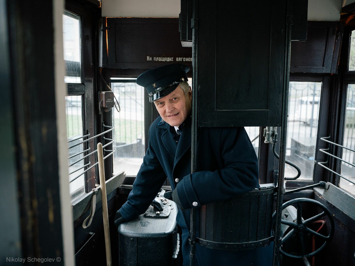 Tram driver Kirill Nykvist in an old tram (2025)